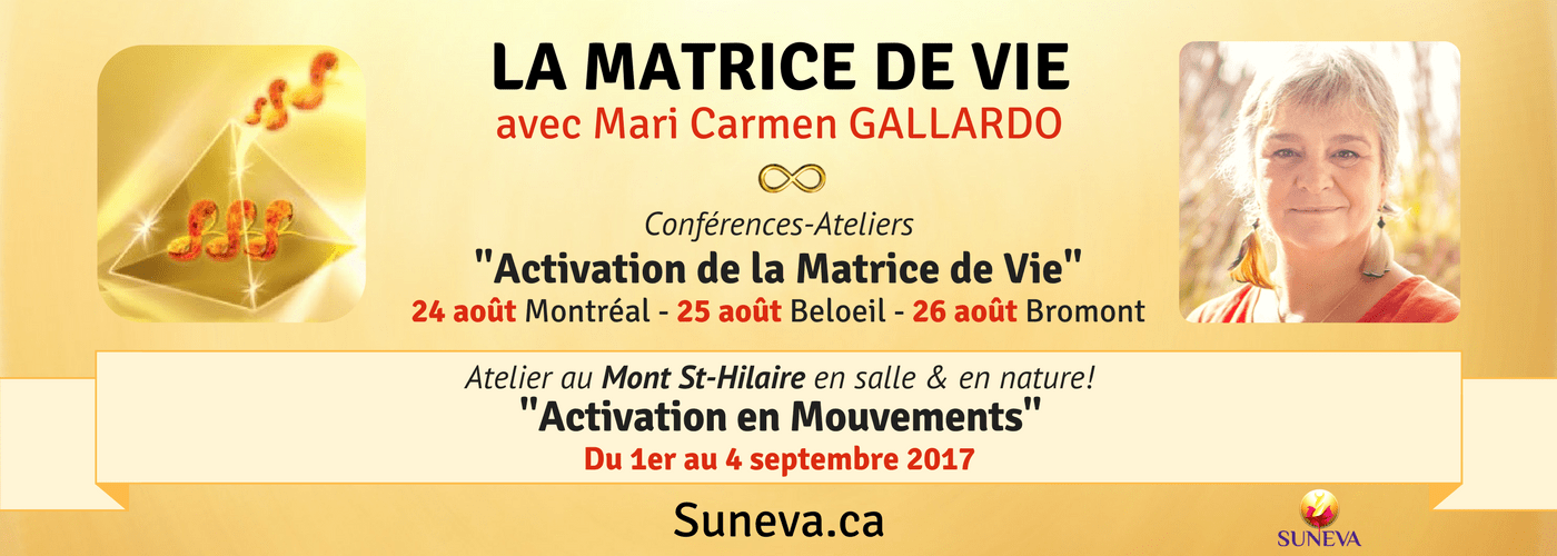 Il y a plusieurs années, Mari Carmen GALLARDO a reçu intérieurement un processus d’Activation de la Matrice de Vie qui se révèle être une puissante approche de transmutation, d’intégration et d’unification de l’Être. Elle s’adresse à tous ceux qui souhaitent réveiller des parties endormies de leur conscience, qui existent en latence.